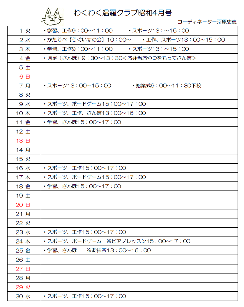 R7年4月予定表