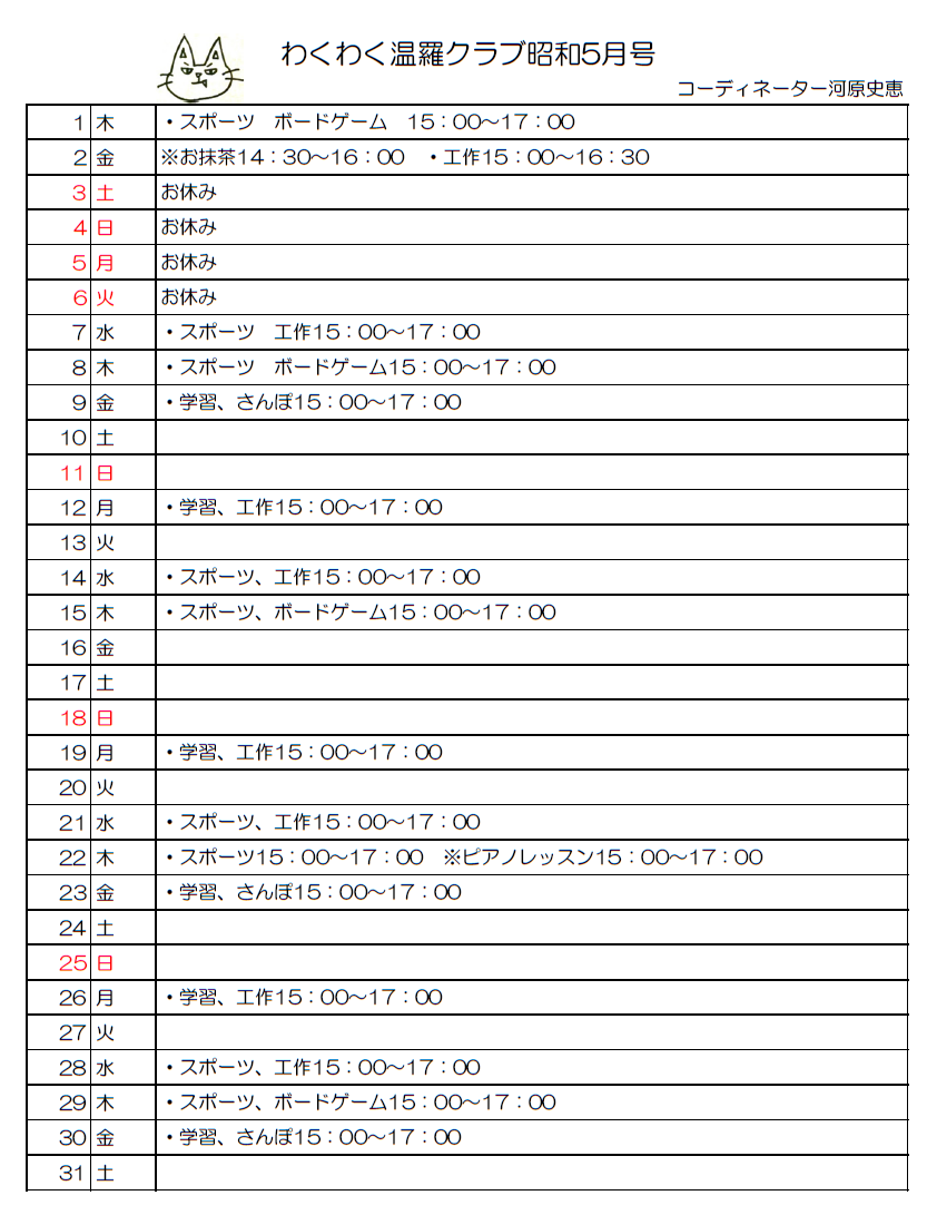 令和7年5月予定表