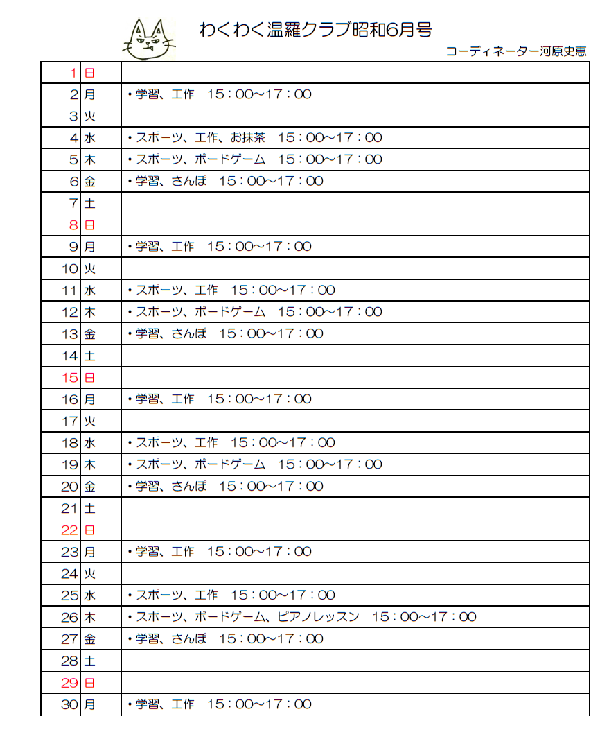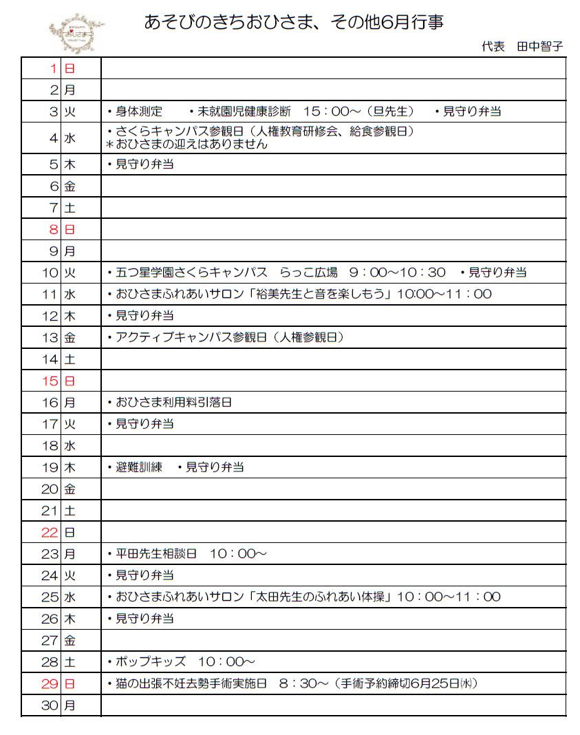 今月の予定
