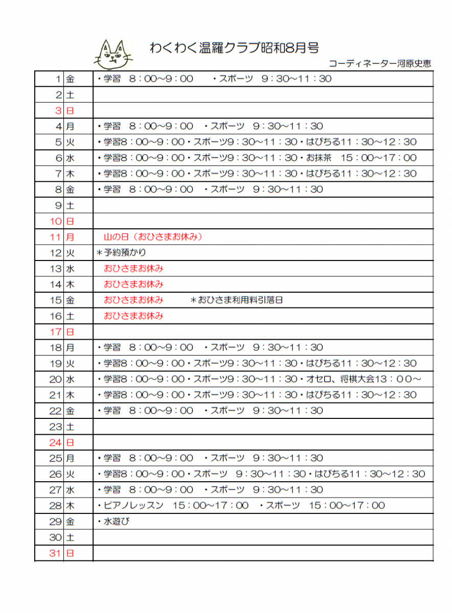 令和7年8月予定表